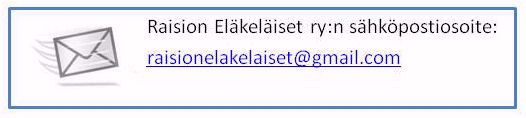 Raision Eläkeläiset ry:n sähköpostiosoite raisionelakelaiset@gmail.com
